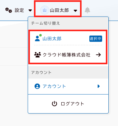 アカウントを切り替える場合は、下記のようにアカウント切り替え機能を使用することで、メンバーアカウントにもアクセス可能となります。