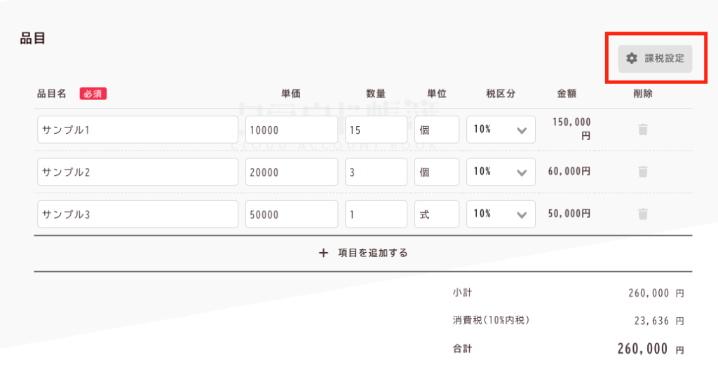 請求書ごとに税区分(内税、外税)の設定は可能ですか?