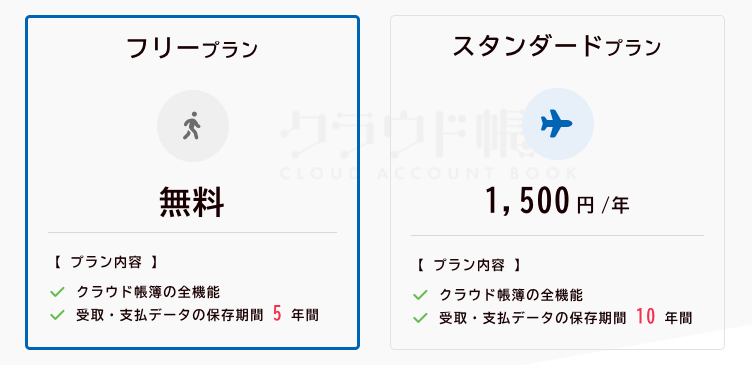クラウド帳簿には 「フリープラン」 と 「スタンダードプラン」 の2つのプランがあります。